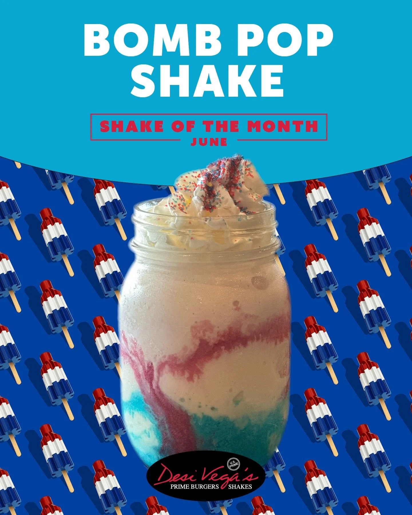 Cool off with our Bomb Pop Shake, a refreshing blend of flavors inspired by your favorite summer treat. It's the perfect way to beat the heat!