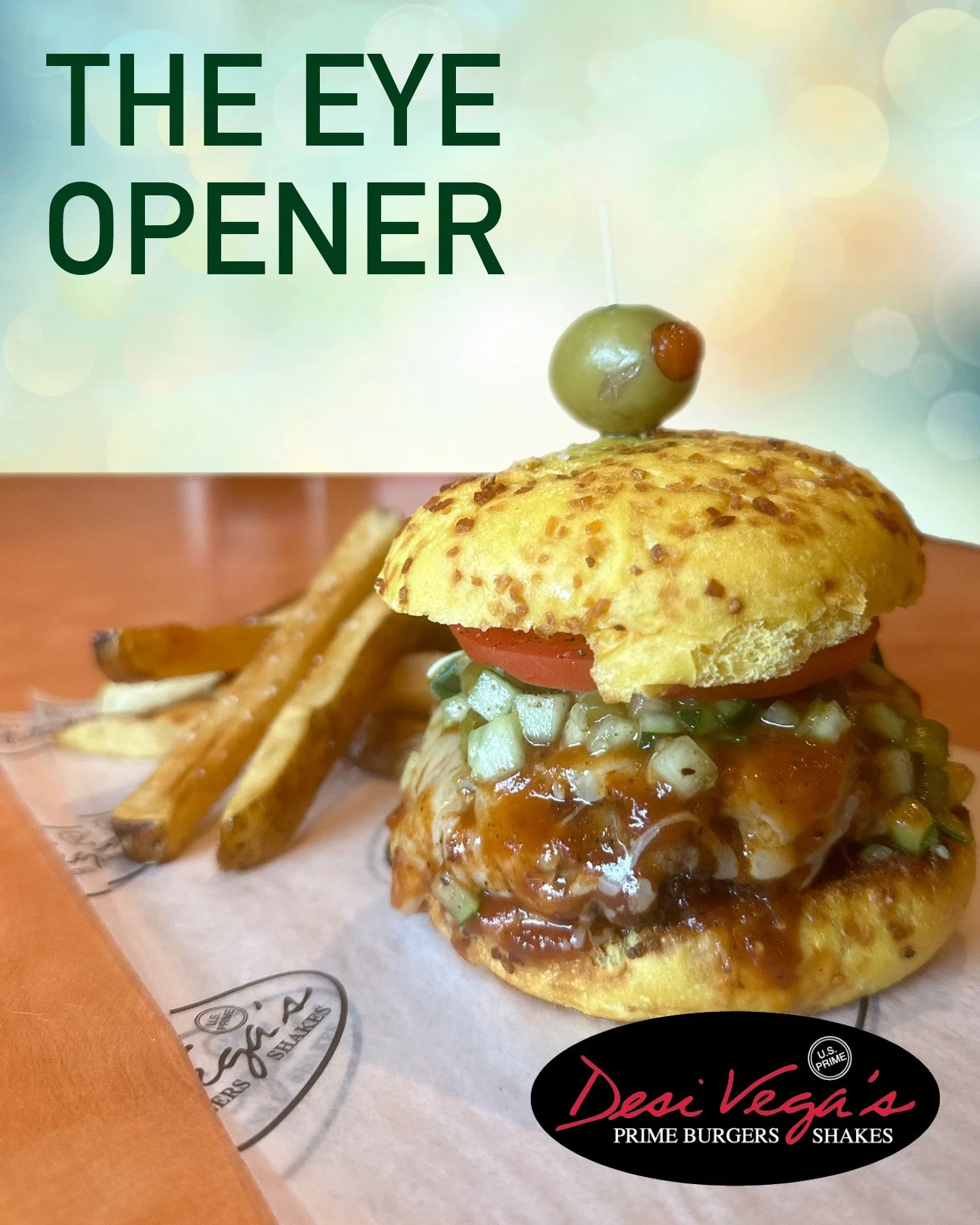 Enjoy an 8oz. prime beef patty with a bold Bloody Mary glaze, topped with melted pepper jack cheese, fresh spiced relish, and seasoned tomato, all on a perfectly toasted onion bun. This burger is a flavor explosion you won't want to miss.